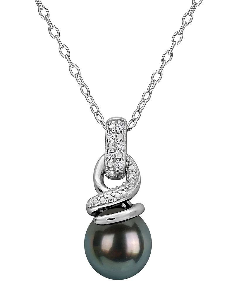 Macy's Cultured Tahitian Pearl and Diamond Accent (0.04 ct. t.w.) Necklace in Sterling Silver
