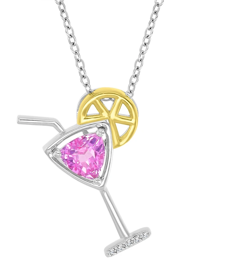 Toast playful glamour with this martini-glass pendant accented by pink sapphire stones and diamond details. Yellow gold–plated sterling silver and a spring ring closure with chain extender offer a fun, adjustable fit.