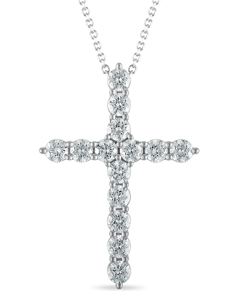Macy's Diamond Cross Pendant Necklace (2 ct. t.w.) in 14k White Gold