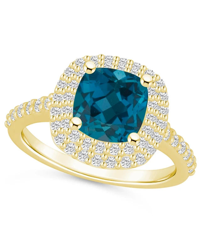 Macy's London Blue Topaz and Diamond Accent Halo Ring 14K Yellow Gold