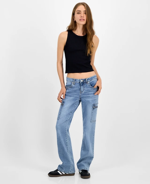 Madden Girl Juniors' Low Rise Cargo Bootcut Jeans
