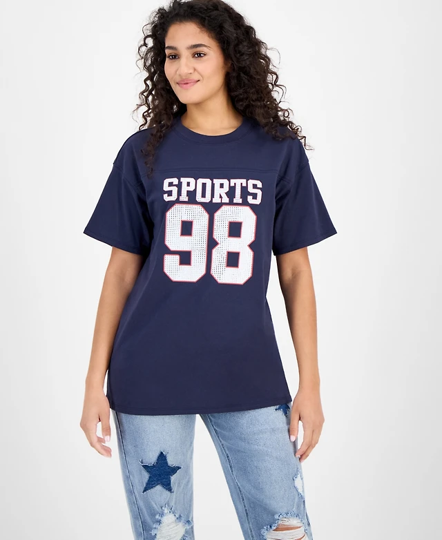Madden Girl Juniors' Rhinestone-Graphic Short-Sleeve T-Shirt