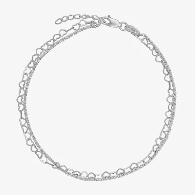 Made in Italy Womens Sterling Silver 9 Inch Solid Link Heart Ankle Bracelet