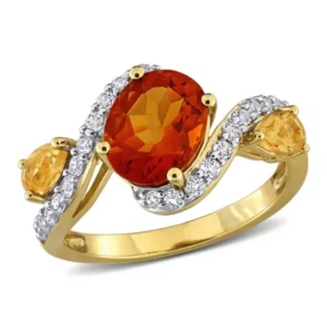 Madeira Citrine, Citrine & White Topaz Ring Yellow Plated Sterling Silver