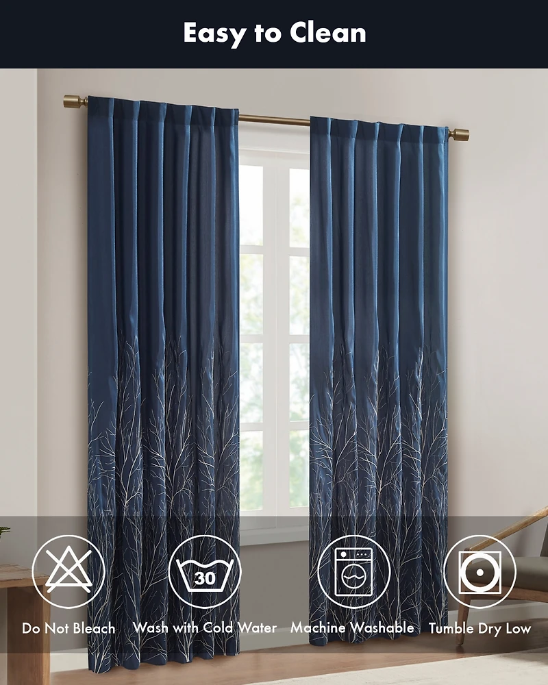 Dive into opulence with a tree branch motif embroidered on exquisite faux silk, crafting a dance of contrast and depth. Lined for privacy and flawless drape, its luminous sheen whispers tales of elegance, making your space a testament to sophistication.