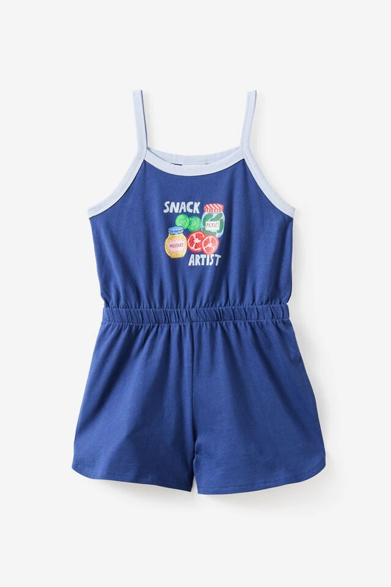Throw it on, leave it on all day. This sleeveless playsuit is made for summer play with a relaxed fit, elasticated waist, and lightweight cotton with a relaxed feel. A scooped neckline, shirred details, and a graphic print bring the fun. Easy to wear, easy to move in, and easy to pair with everything. Even better? Get the matching hoodie or crew to make it the cutest set ever.