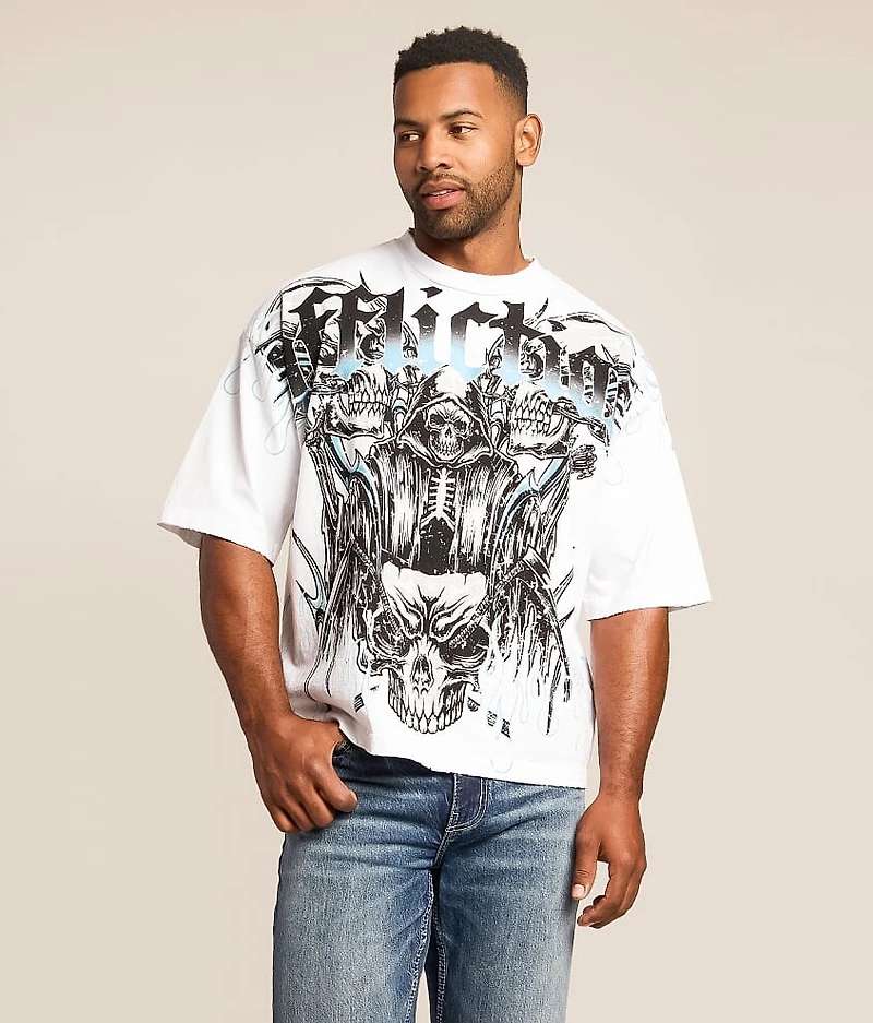Distressed graphic raw edge boxy t-shirt