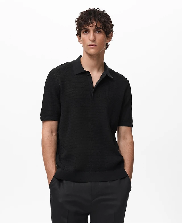 Mango Men's Crochet Cotton Polo Shirt