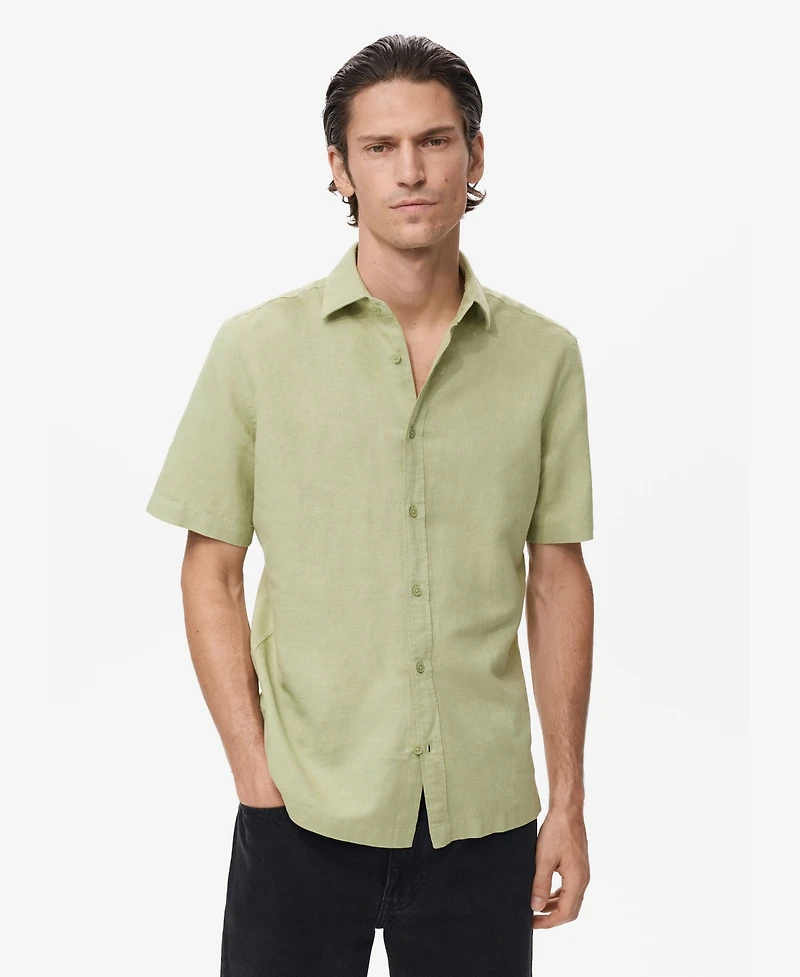 Set a relaxed tone in the Short Sleeve Linen-Blend Shirt from Mango.