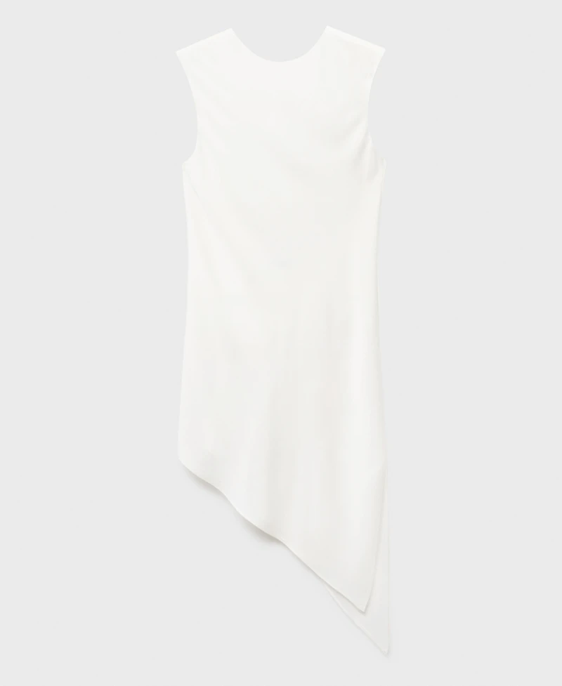 Event-ready elegance marks the Asymmetrical Satin Top from Mango. This long top features open back, side slit.