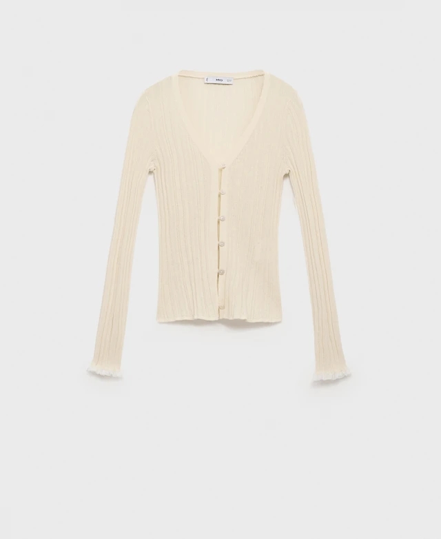 Mango Women's Contrasting Ribbed Cardigan Sweater