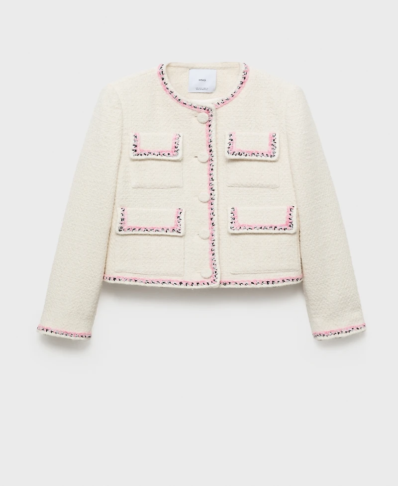 Timeless sophistication defines the Tweed Jacket with Contrasting Trims from Mango.