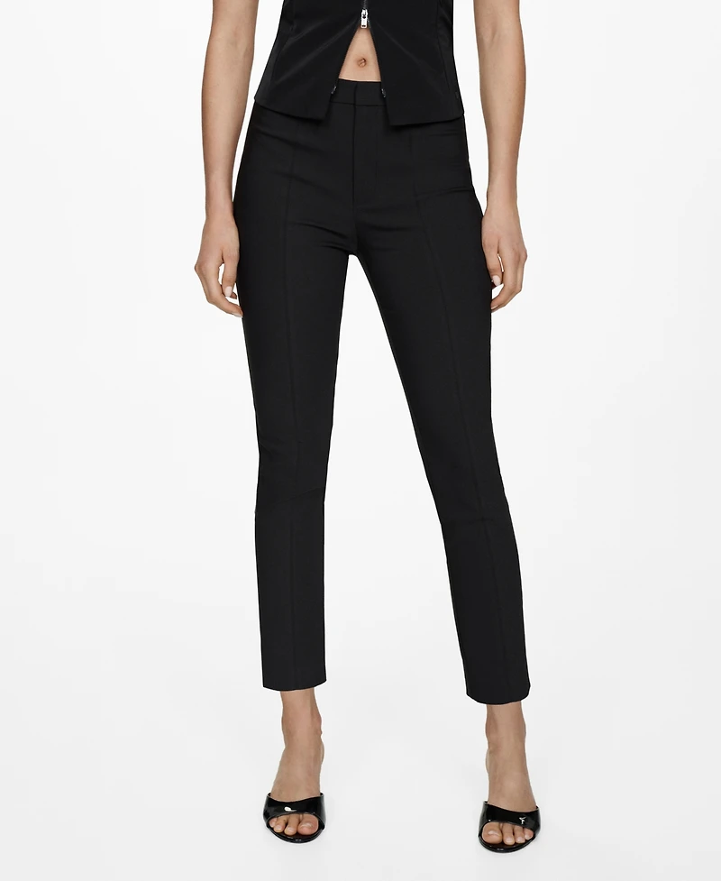 Slay in style by wearing these Crop Skinny Trousers from Mango. Made from polyester-mix fabric, these low-waist trousers feature a skinny fit, cropped design, two welt pockets on the back, and a concealed button, hook and zip fastening.