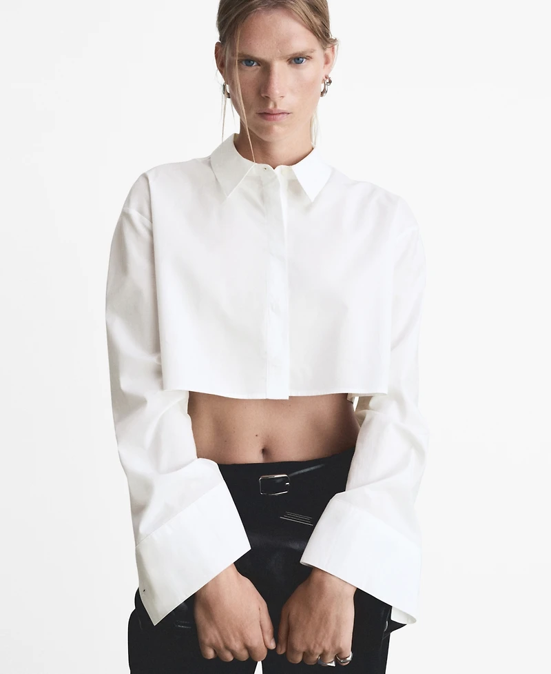Make heads turn in appreciation by wearing this Cropped Cotton Shirt from Mango. This shirt features straight design and concealed front button fastening.