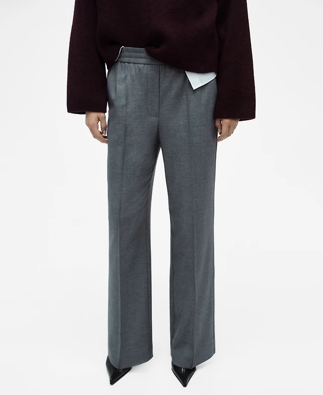 Mango Women's Elastic Waist Flowy Trouser Pants