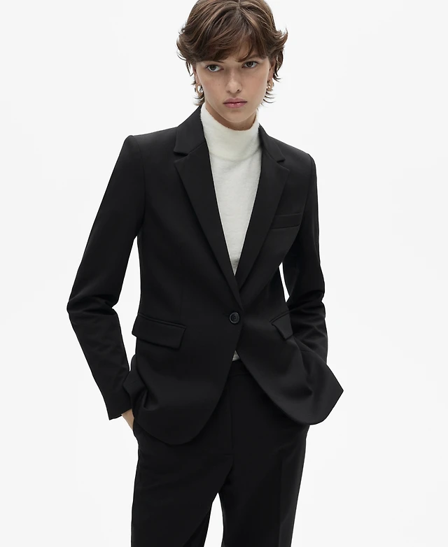 Mango Women's Lapel Pockets Straight Suit Jacket