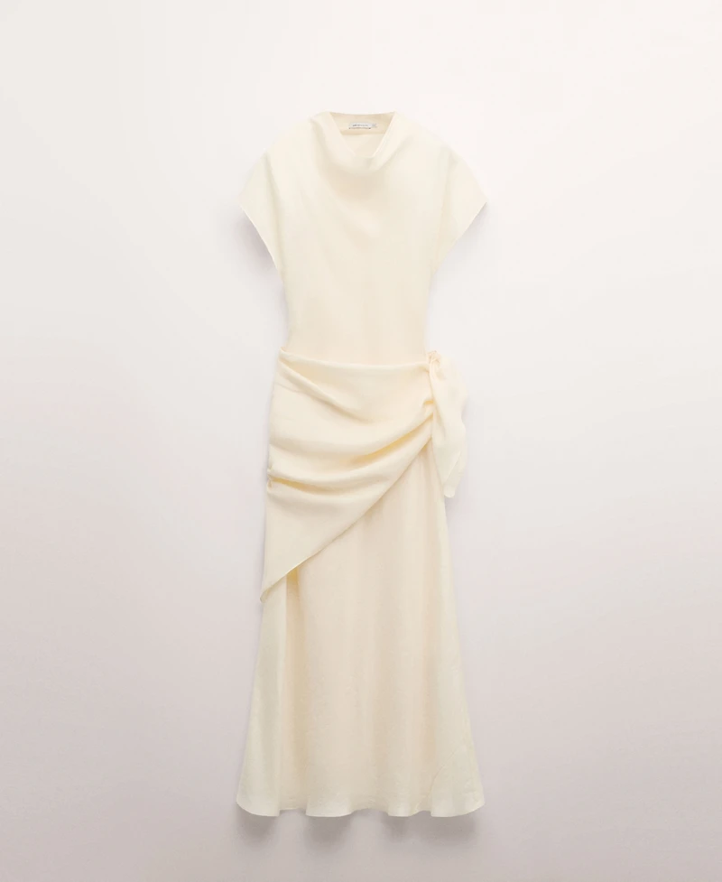Bring fluid elegance to casual dressing with Lyocell Dress With Scarf Detail from Mango. Made from lyocell fabric, the dress features combined cut, long length, A-line shape, draped neckline, short sleeves, knot detail at waist, and side zip closure. With a history spanning four decades, Mango is one of Europe's leading fashion brands. From Barcelona, on the banks of the Mediterranean, they delight the world with their fashion proposal and lifestyle. Mango's creative team works every day to translate fashion trends into their own language, which they deliver to customers in a personalized way while paying attention to detail.