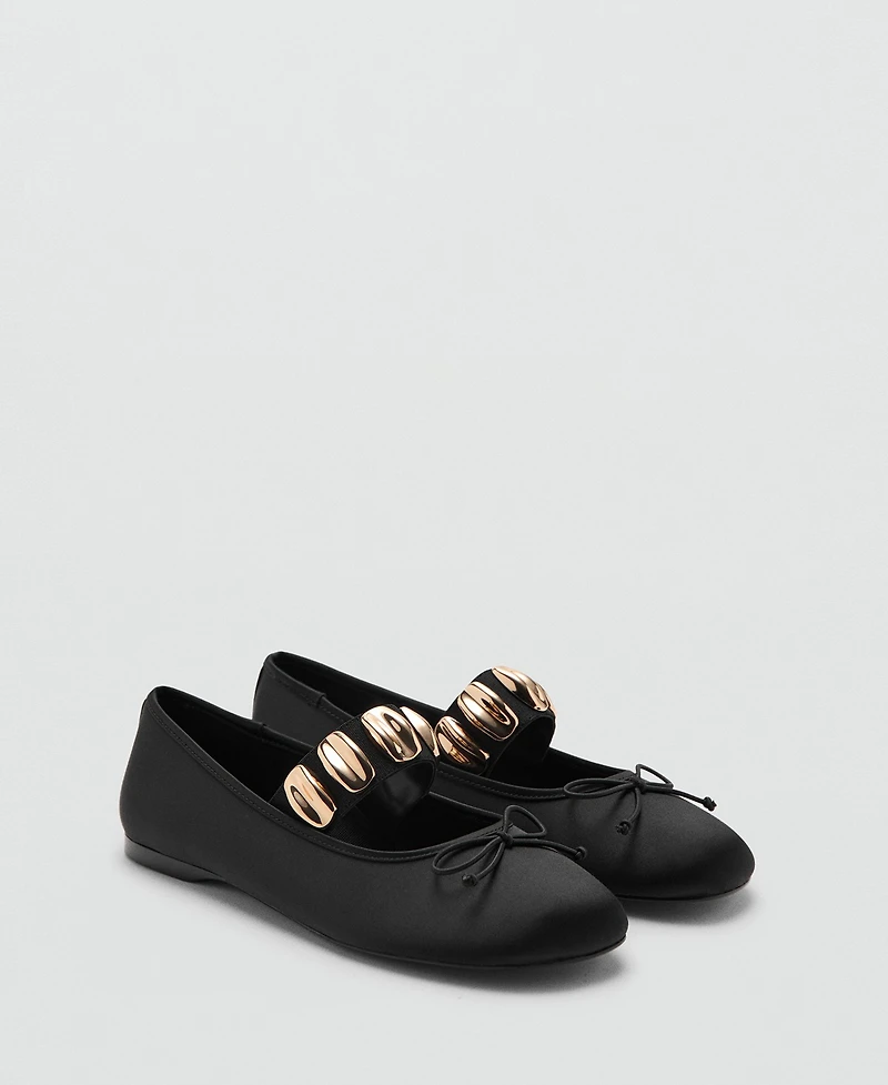 Mango Women's Metallic Applique Straps Ballerina