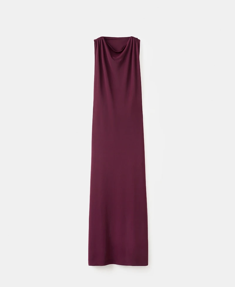 A fluid neckline shapes the Draped Dress with Metallic Detail from Mango. Made from fine-knit fabric, this long dress features straight design, wide straps, shoulder ruching and metallic accent.