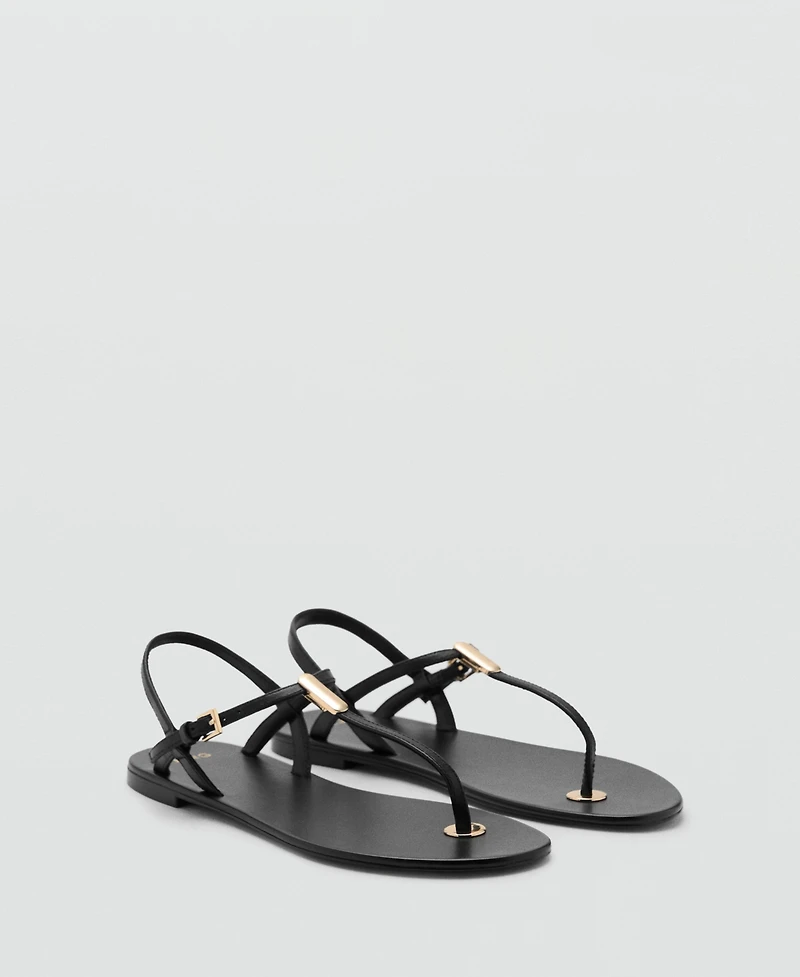 Mango Women's Metallic Detail Leather Sandals