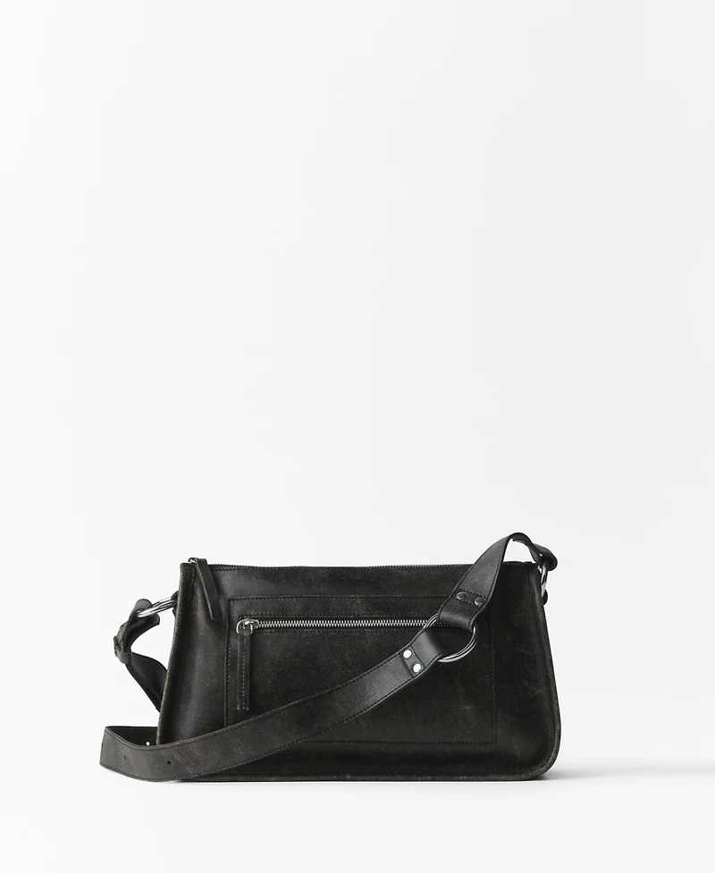 Elevate your style with the Leather Bag with Metallic Details from Mango. This medium sized bag features metallic detail, adjustable buckle, outside zip pocket