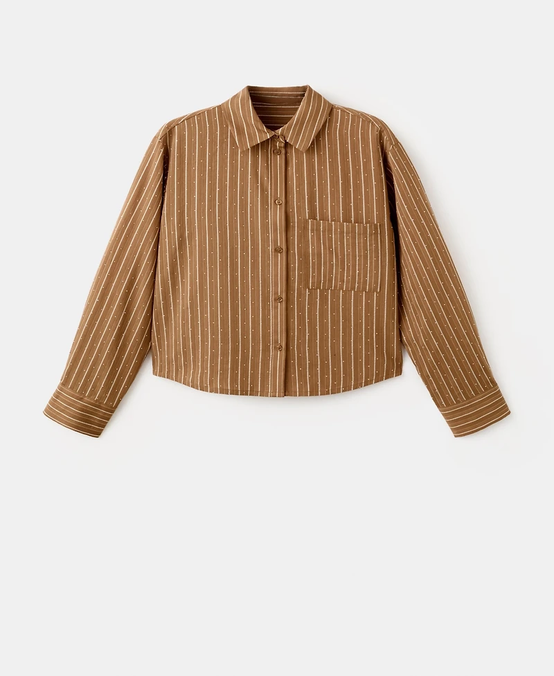 Mango Women's Rhinestone Detail Striped Shirt