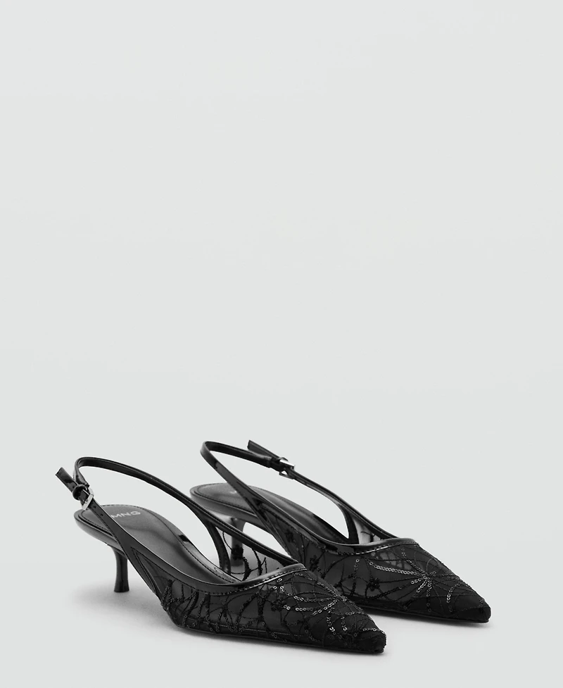 Mango Women's Sequins Embroidered Kitten-Heel Shoes