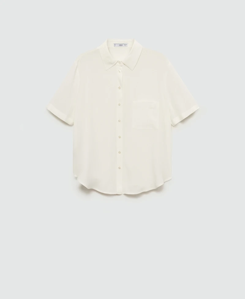 The Short Sleeve Pocket Shirt by Mango is crafted from fluid viscose fabric for a soft, lightweight feel. Featuring a relaxed silhouette with a classic shirt collar, a front button closure and it's a versatile piece perfect for warm-weather styling.