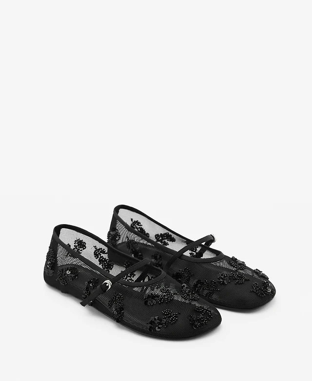 Mango Women's Mesh Strass Ballerina Flats