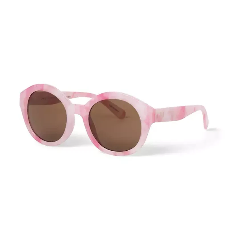 Add instant cool to any look with these round sunnies. Featuring marbled details and tinted UV lenses for facing bright days. Manmade Material Polyurethane Frame; UV Lenses Flexible Pink Rubber Arms (Size 0-3 Only) Spot Clean; Imported