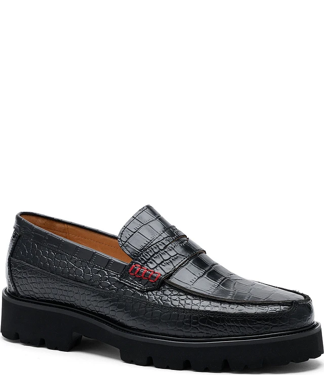 Marc Nolan Men's Adler Croco Embossed Leather Penny Loafers