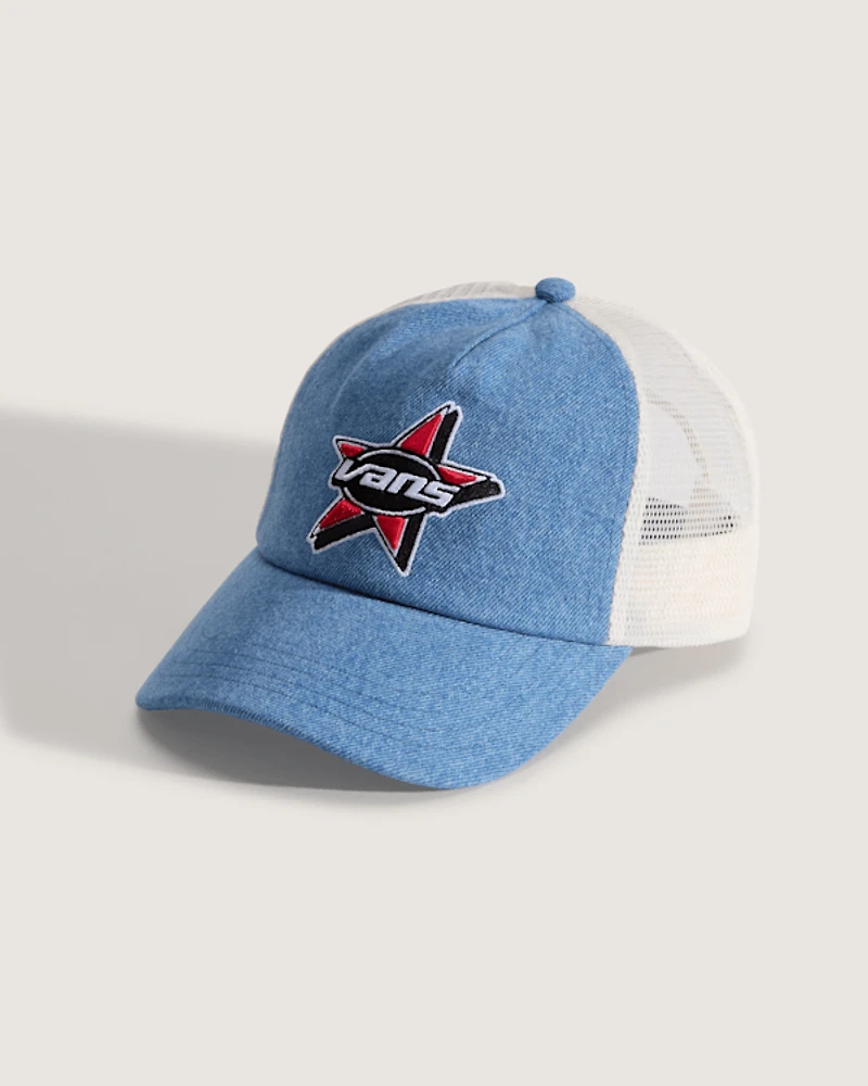 Rock this denim and mesh trucker for laid-back, everyday style with a nod to Vans' heritage. The embroidered logo patch adds an authentic touch, while the adjustable snapback ensures a comfortable fit for all-day wear. Perfect for chilling with friends or running weekend errands in classic Vans fashion.