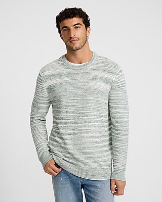 A lightweight cotton-blend sweater complete with a crew neckline, long sleeves, and a marled pattern.