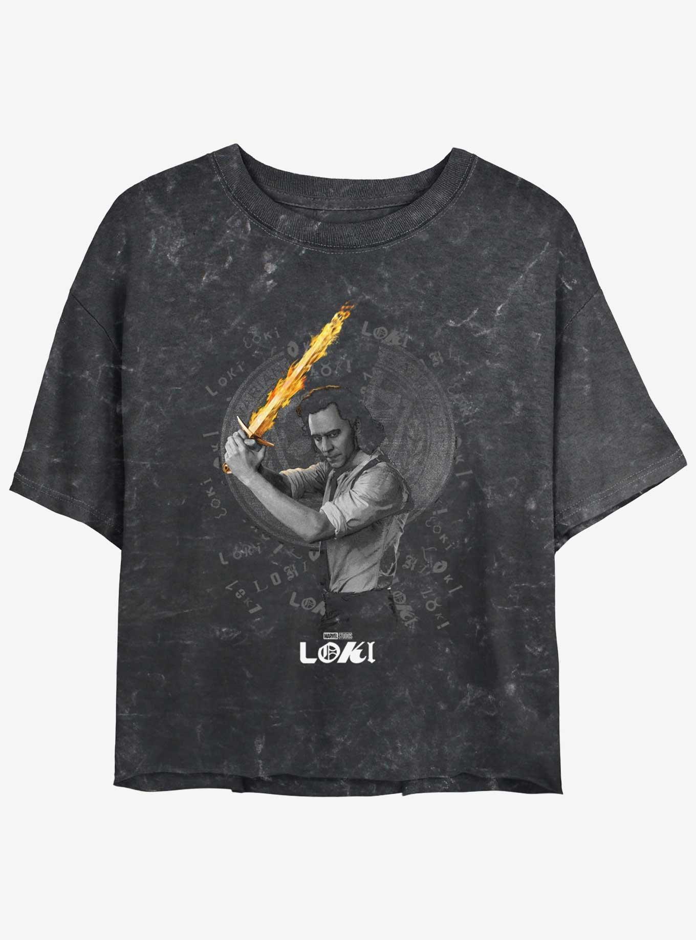 Marvel Loki Laevateinn Flaming Sword Girls Mineral Wash Crop T-Shirt in Franklin, TN