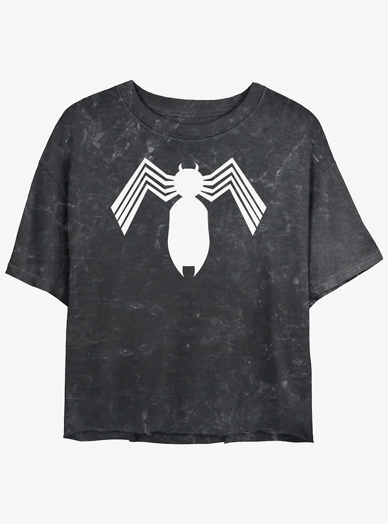 Marvel Spider-Man Symbiote Spider-Man Logo Girls Mineral Wash Crop T-Shirt