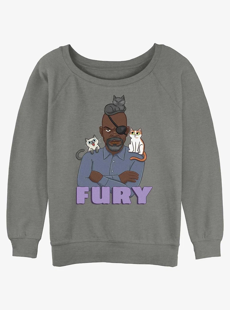 Marvel The Marvels Nick Fury Cats Girls Slouchy Sweatshirt