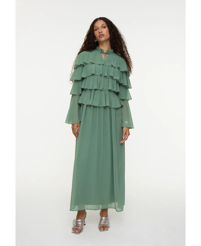 Maryisa Women's Modest Ruffle Chiffon Dress Maxi With Designer Sleeve