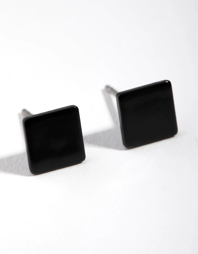 Matte Black Square Stud Earrings