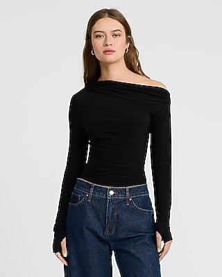 Matte Jersey Draped Off The Shoulder Long Sleeve Tee in Franklin, TN