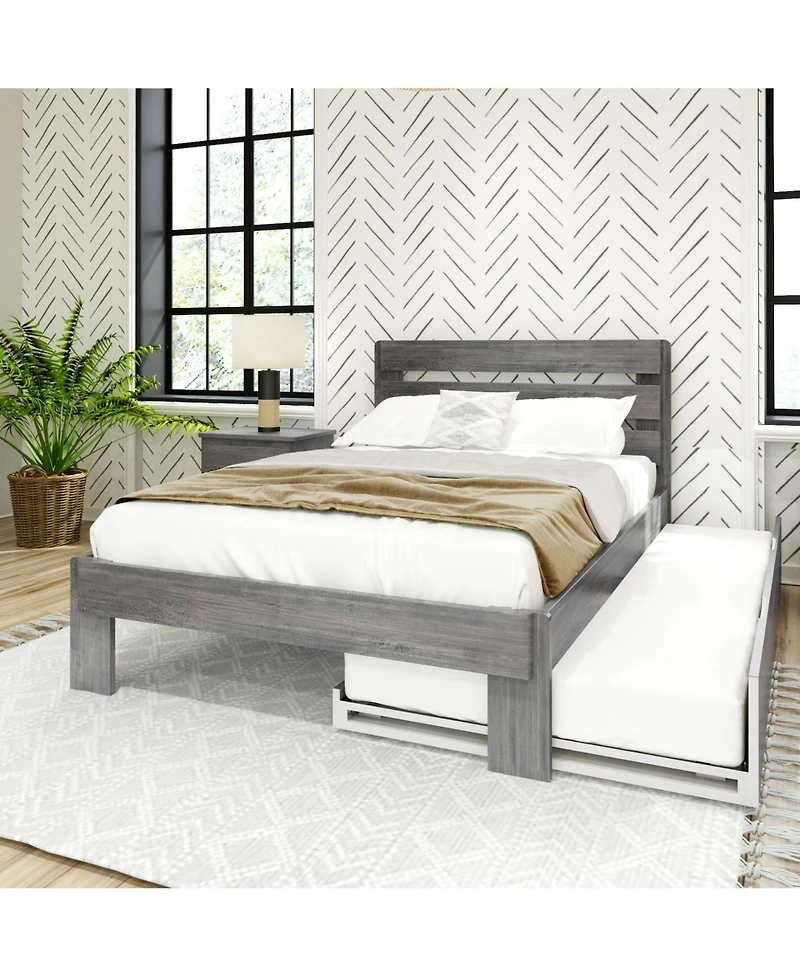 Max and Lily Full Bed Frame, Farmhouse Solid Wood Platform with Headboard Trundle