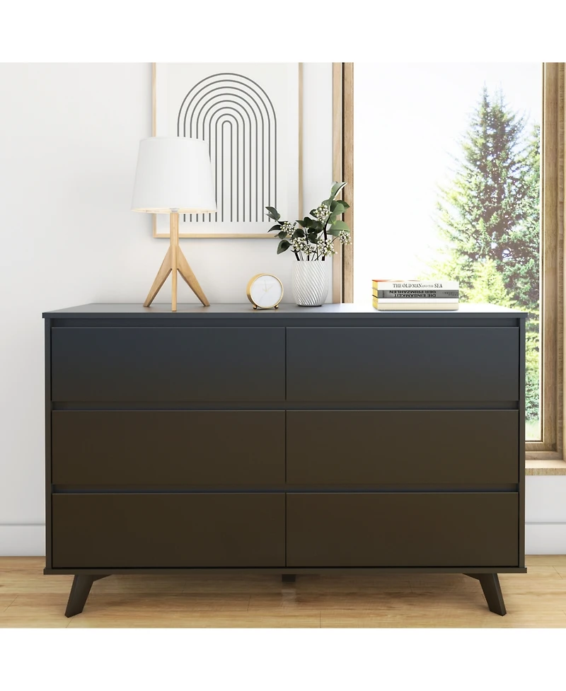 Max and Lily Solid Wood Scandinavian 6 Drawer Dresser