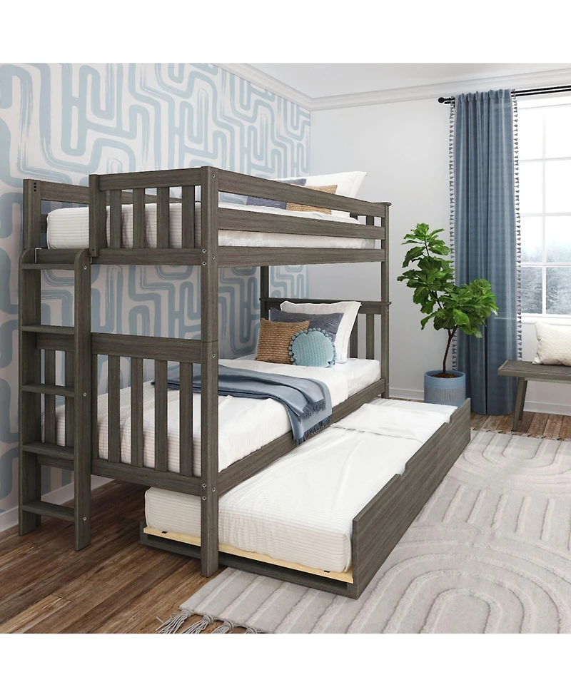 Max & Lily Bunk Bed with Ladder on End and Trundle, Twin-Over-Twin Frame for Kids