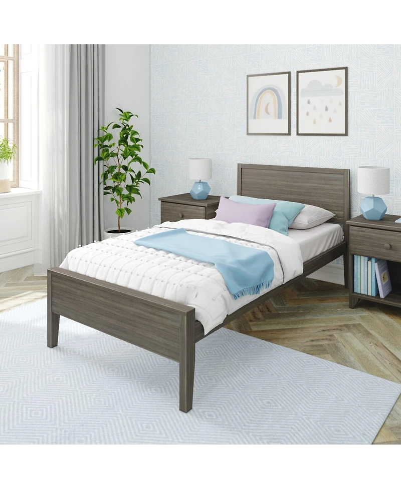 Bring the best of fun and functional design to your kids bedroom with the Max and Lily Twin-Size Bed with Panel Headboard. The knot-free, solid wood twin bed frame adds strength and stability. This kids twin bed uses a durable finish that s ideal for your clean and healthy home. The panel headboard provides the perfect back support when reading or watching Tv in bed. This modern twin bed features flush, color-matched hardware for a clean, contemporary look. With strong plywood slats and a metal support bar, this twin bed can support 400 lbs. of resting weight - no box spring or Bunkie board required. This twin bed frame with headboard includes easy-to-read instructions, tools, and hardware for a quick setup. The twin bed can accommodate standard twin mattresses up to 8 inches thick.