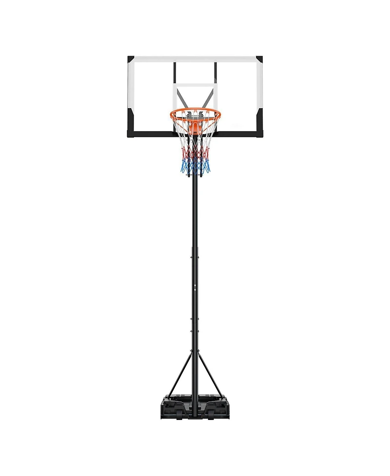 Enjoy fast-paced basketball fun at home with this easy-to-assemble portable hoop system, complete with all tools for quick setup so beginners and families can start playing in minutes. Dual-brake 360° swivel wheels let one person move and lock the hoop securely in place, indoors or outdoors, for flexible play anywhere. The easy-pull lift mechanism adjusts from 5.25 to 10 ft (1.6–3.05 m), making it perfect for kids, teens, and adults of all skill levels. A 48" shatterproof Pc backboard with iron frame and corner protectors delivers consistent rebounds and clear visibility, while the weather-resistant net stands up to outdoor conditions. The high-strength steel frame and fillable base (water or sand) provide rock-solid stability for intense games and long-lasting backyard or driveway fun.