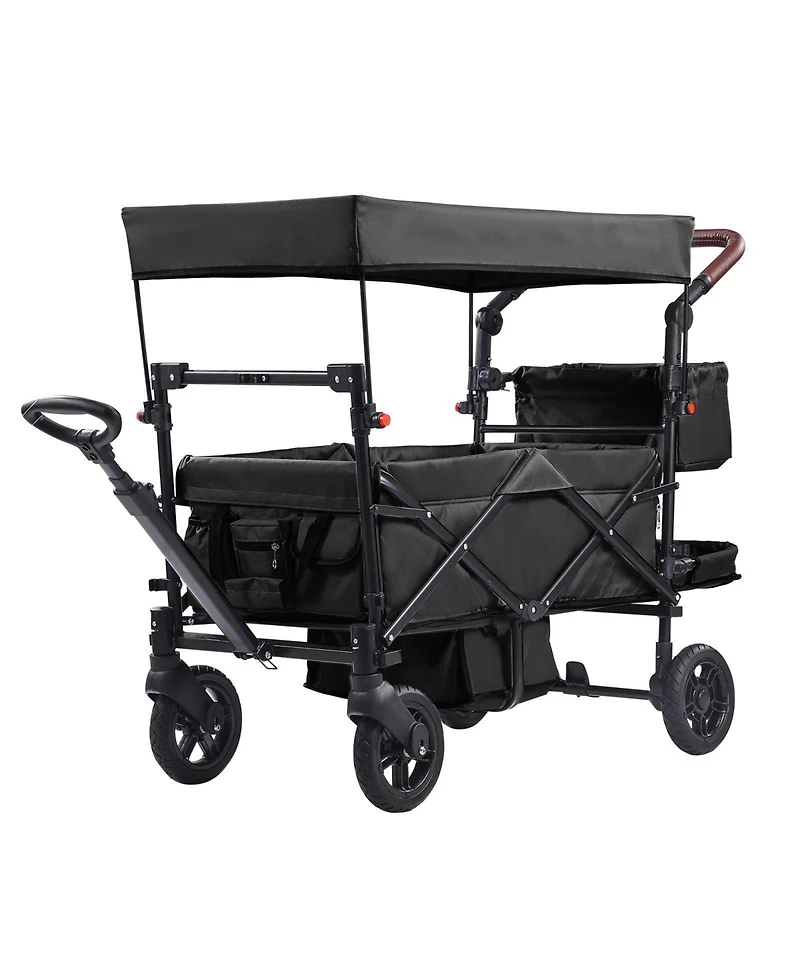 Mecale Wagon Stroller for 2 Kids, Collapsible Push Pull Quad with Adjustable Handle, Harness, Removable Canopy, 4 Wheels Brakes