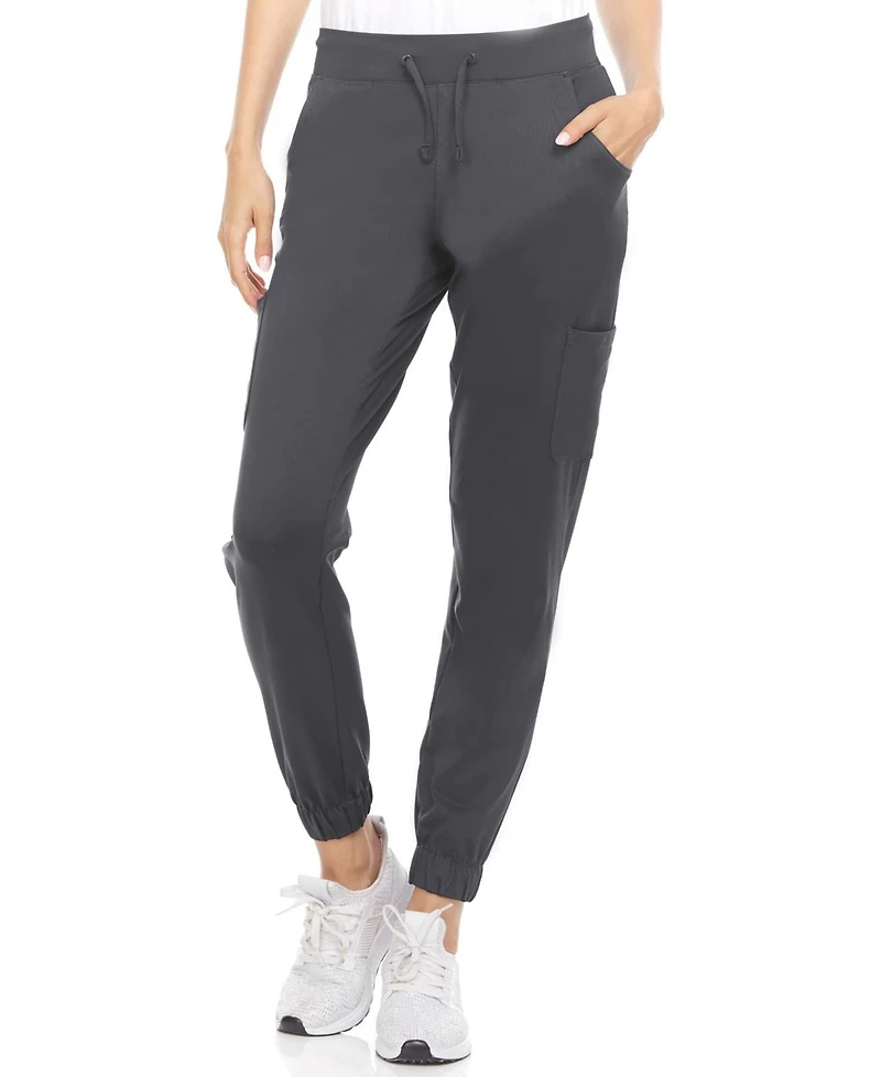 Medichic Women's Scrubs Mid Rise Six Pocket Yoga Scrub Joggers, Wine Large