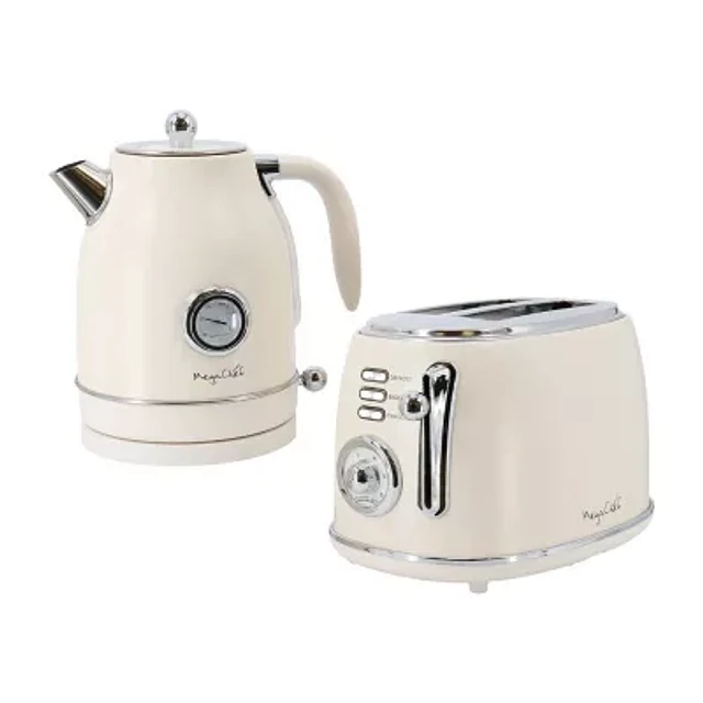 MegaChef 1.7 Quart Electric Tea Kettle and 2 Slice Toaster Combo Matt Cream