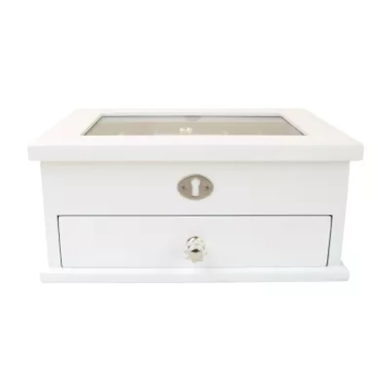 Whether you are looking to store a precious inherited jewelry pieces or small gemstone rings, the Mele and Co. Mini Lili white jewelry box is all you need. This beautiful jewelry box features 9 compartments and a spacious drawer. Its suede lining protects your precious jewelry from scratches. This compact little jewelry box has dedicated space for all your jewelry, including rings, pendant chains, and earrings.