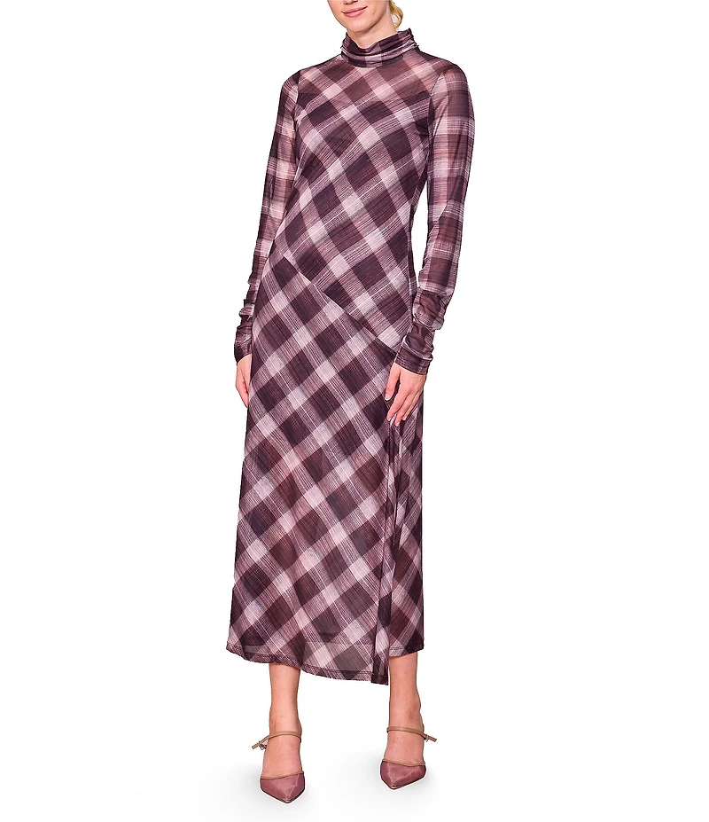 MELLODAY Plaid Printed Asymmetric Style Line Mock Neck Long Sleeve Column Midi Dress in Franklin, TN