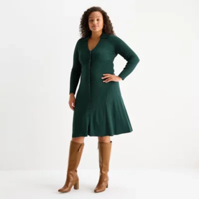 Maia Womens Plus Long Sleeve Midi Sweater Dress